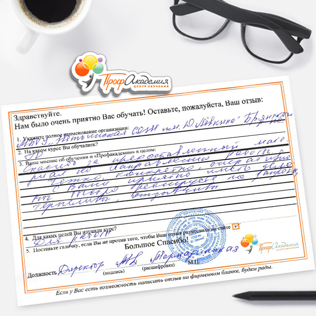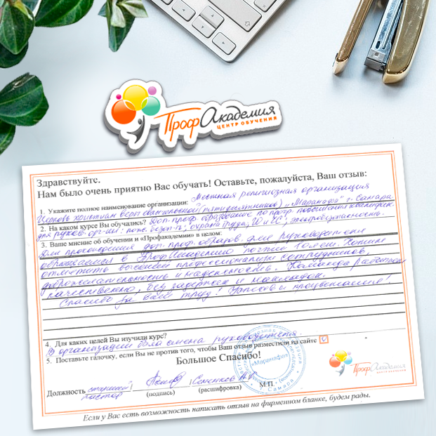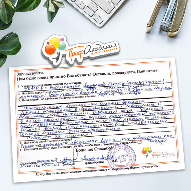 После успешного окончания обучения вы получите документы установленного образца. Высылаем по почте заказным письмом.